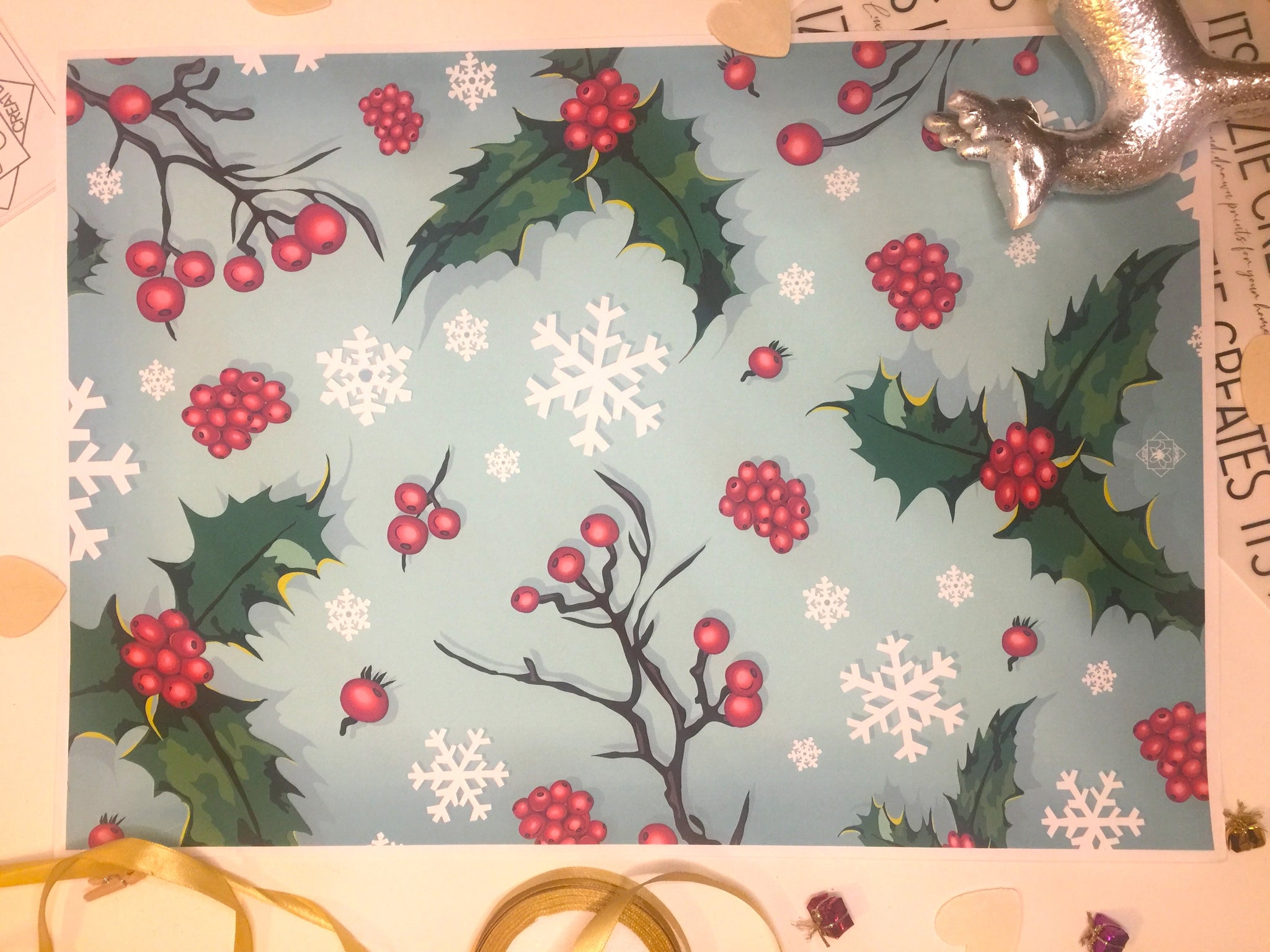 • Load image into Gallery viewer, Holly Christmas wrapping paper (A3, pack of 10)