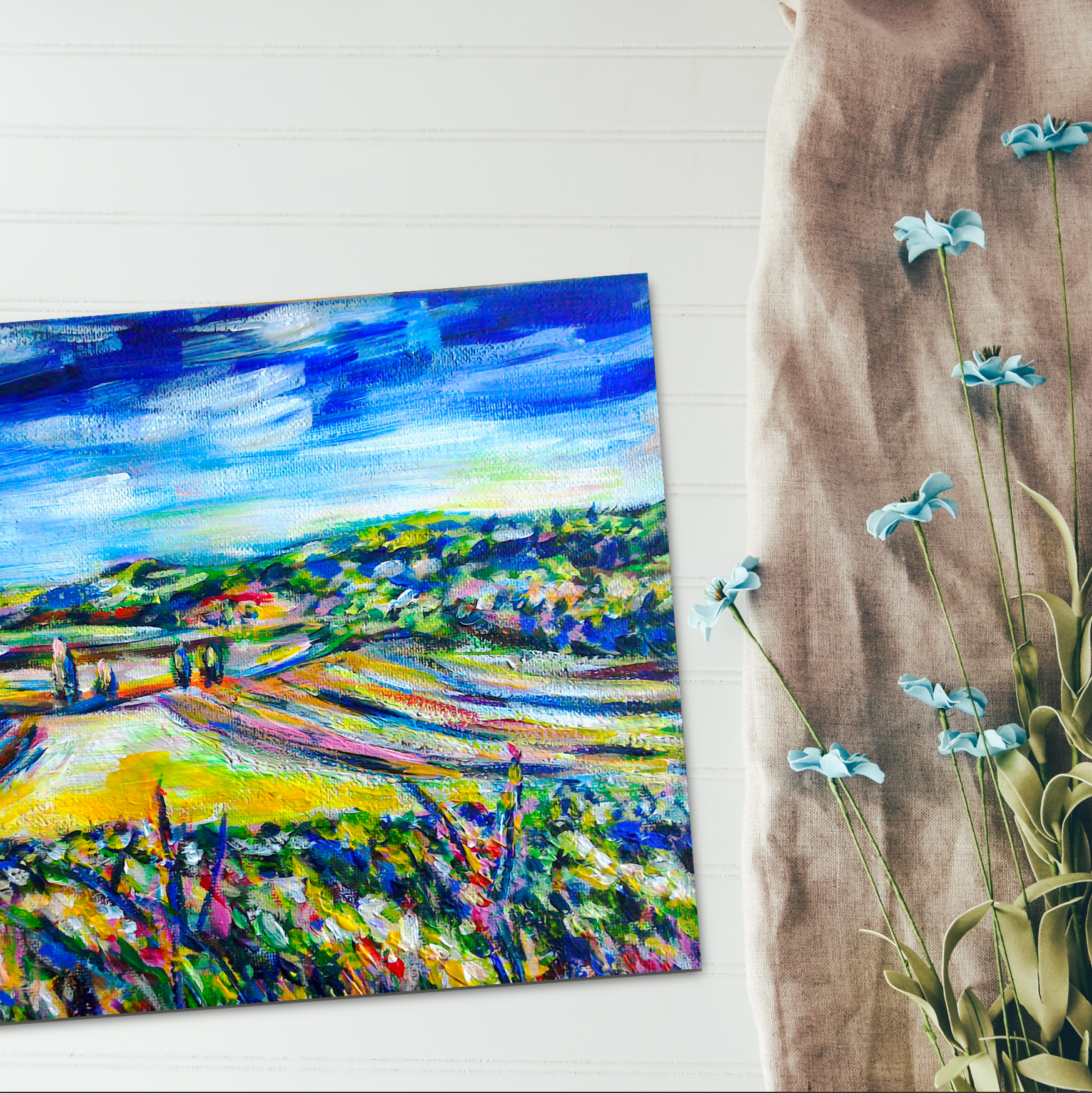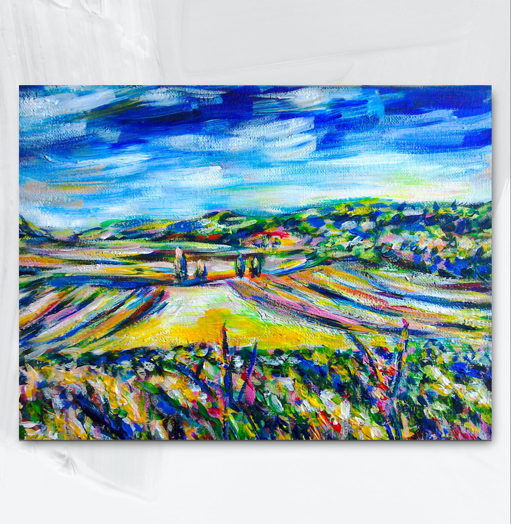 A stunning backdrop for that blank wall crying out for some colour! Inspired by the sloping hills of Tuscany this beautiful landscape will do justice to any home or office space.