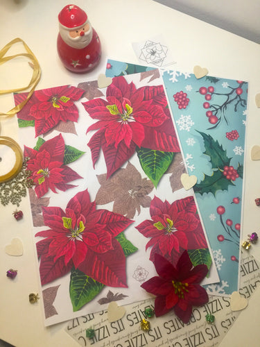 Poinsettia Christmas wrapping paper (A3, pack of 10 sheets)